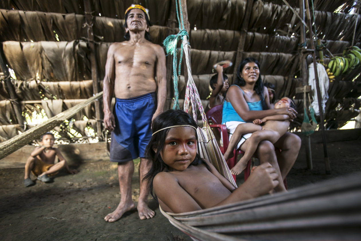 Far into the dense jungle between the Curaray and Napo rivers, the Waorani navigate the modern world while still leading mostly traditional lives. Men go on expeditions deep in the forest to hunt peccary with blowguns, while women delicately weave chambira fiber from a local palm into intricate baskets and handicrafts as their ancestors have for millennia. Generations of extended families live together in open-air thatched roof houses, which dot the banks of the rivers they depend on for drinking, fishing and bathing.