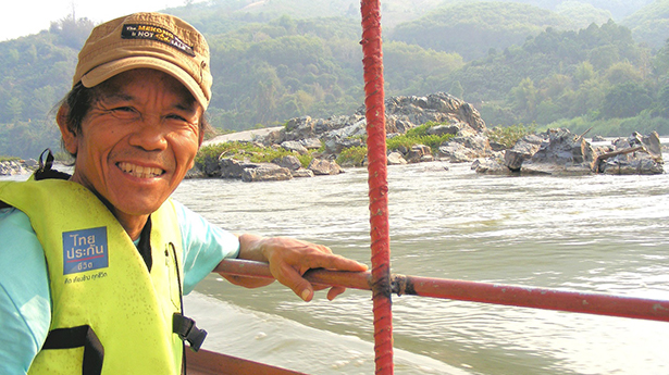 After our trip up the river, we visited with Niwat who is locally famous for boarding a Chinese ship that was attempting to blast the rocks out of the river a few years ago. Niwat kept the blasting at bay for several days until the Chinese government agreed to stop the work. Niwat speaks about the river in spiritual terms and sees the relationship between the river and the people as holistic. “When the river has problems, the people have problems,” he says. “When the people re-learn their local knowledge and their relationship with the river, they can rebuild themselves as well as fight to protect the river.”